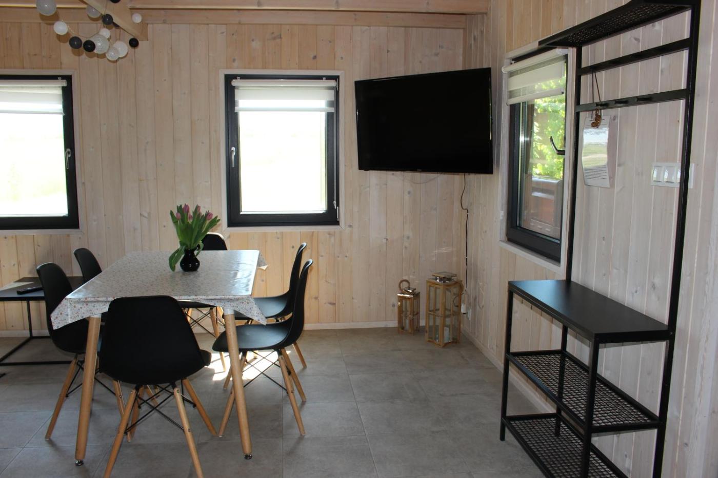 Dom z 3 sypialniami. Jest to dom wakacyjny z kominkiem. Ten dom wakacyjny z prywatnym wejściem mieści salon, 3 oddzielne sypialnie oraz łazienkę z prysznicem. W kuchni przygotowano płytę kuchenną, lodówkę, zmywarkę do naczyń oraz przybory kuchenne. Goście mogą korzystać z grilla. Pozostałe udogodnienia obejmują taras z widokiem na jezioro, zestaw do parzenia kawy i herbaty oraz telewizor z płaskim ekranem i dostępem do kanałów kablowych. Do dyspozycji gości jest 5 łóżek. Dom wakacyjny - 5 osobowy. Powierzchnia pokoju ok.: 70 mkw.