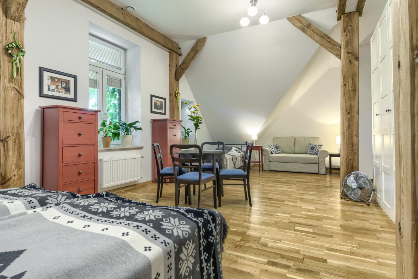 Pokój rodzinny. The family room offers a wardrobe, parquet floors, as well as a private bathroom boasting a walk-in shower and a hairdryer. The family room features heating and garden views. The unit has 4 beds. Rodzinny - 4 osobowy. Powierzchnia pokoju ok.: 40 mkw.